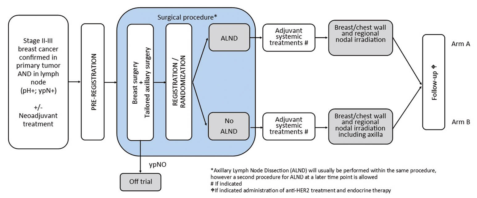 Studienname: SAKK 23/16: Tailored AXIllary Surgery with or without axillary lymph node dissection followed by radiotherapy in patients with clinically node-positive breast cancer (TAXIS).