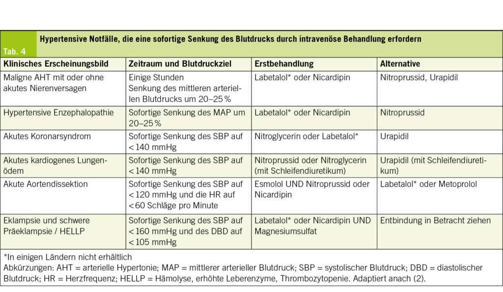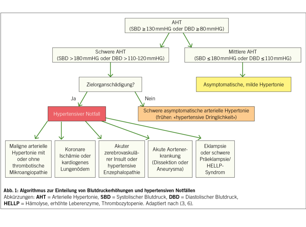 Arterielle Hypertonie (AHT) ist weltweit der wichtigste veränderbare Risikofaktor für kardiovaskuläre Morbidität und Mortalität (1). In akuten Situationen kann ein starker Anstieg des Blutdrucks (BD) zu einer Schädigung von Zielorganen (ZOS) – Gehirn, Herz, Nieren, Augen, Gefässe oder Blut – führen oder diese verschlimmern, was kurzfristig lebensbedrohlich sein kann.