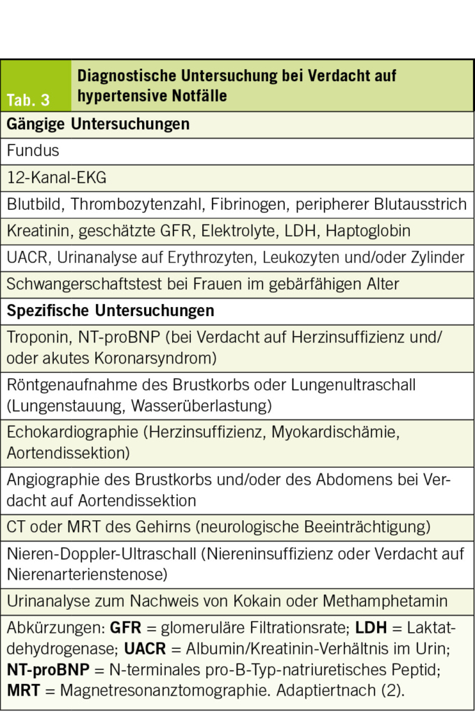 Diagnostische Beurteilung bei Vermutung eines hypertensiven Notfalls