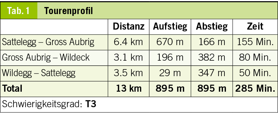 In dieser Rubrik werden Berg- und Schneeschuhwanderungen vorgestellt, die in der Regel wenig bekannt sind, zu aussergewöhnlichen Orten führen und die Genugtuung einer besonderen persönlichen Leistung bieten, sei es, dass man sich am Abend nach der Arbeit noch zu einer kleinen körperlichen Anstrengung überwindet, bzw. sich in ein oder zwei Tagen abseits breit getretener Wege unvergessliche Naturerlebnisse erschliesst. Zur besseren Beurteilbarkeit des Schwierigkeitsgrades der Tourenvorschläge wird jeweils eine Einschätzung anhand der SAC-Skala für Berg- (T1–6) und für Schneeschuhwanderungen (WT 1–6) gegeben. Die schwierigste Wegstelle, unabhängig von ihrer Länge, bestimmt jeweils die Gesamtbewertung der Route. Letztendlich bleibt aber jeder selbst für die Beurteilung seiner Fähigkeiten und Eignung für die vorgestellte Wanderung verantwortlich. Die Gehzeiten sind Richtwerte und gelten für normal trainierte Wanderer. Sie müssen nicht zwingend mit den Angaben auf Wegweisern übereinstimmen.