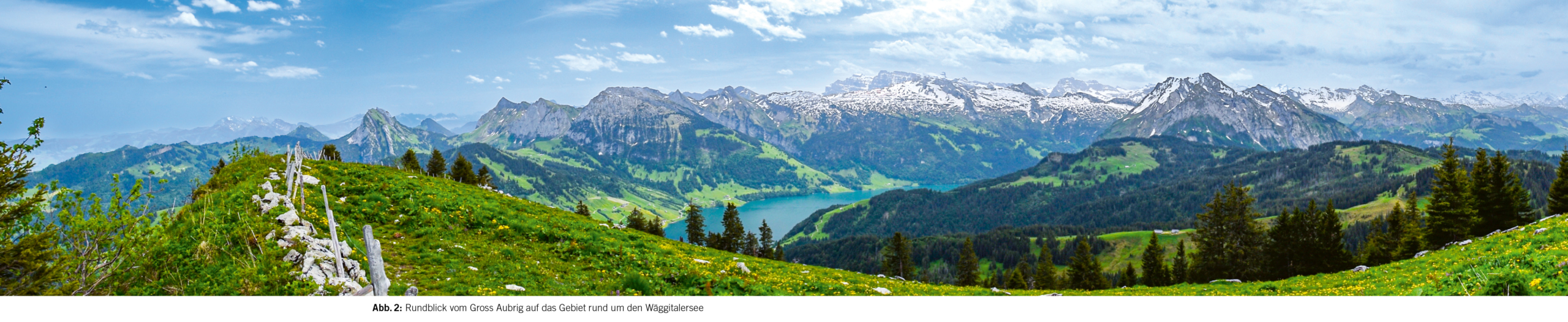 In der vom Etzel zum Wägitalersee ziehenden Bergkette bildet der Gross Aubrig mit seinen 1695 Metern die höchste Erhebung. Von Norden her betrachtet stellt er zusammen mit seinem kleinen Bruder, dem Chli Aubrig, eine markante Felsenklippe dar. Die Aubrige sind zurückgebliebene Schuppen der helvetischen Deckenbildung während der Auffaltung der Alpen. Sie liegen, wie die Mythen auch, jüngerem Flysch auf. Während sich der Zugang zum Chli Aubrig von Euthal oder der Sattelegg aus einfach und direkt erschliesst, erweist sich die ­Besteigung des Gross Aubrig etwas sperriger, aber nicht weniger reizvoll.