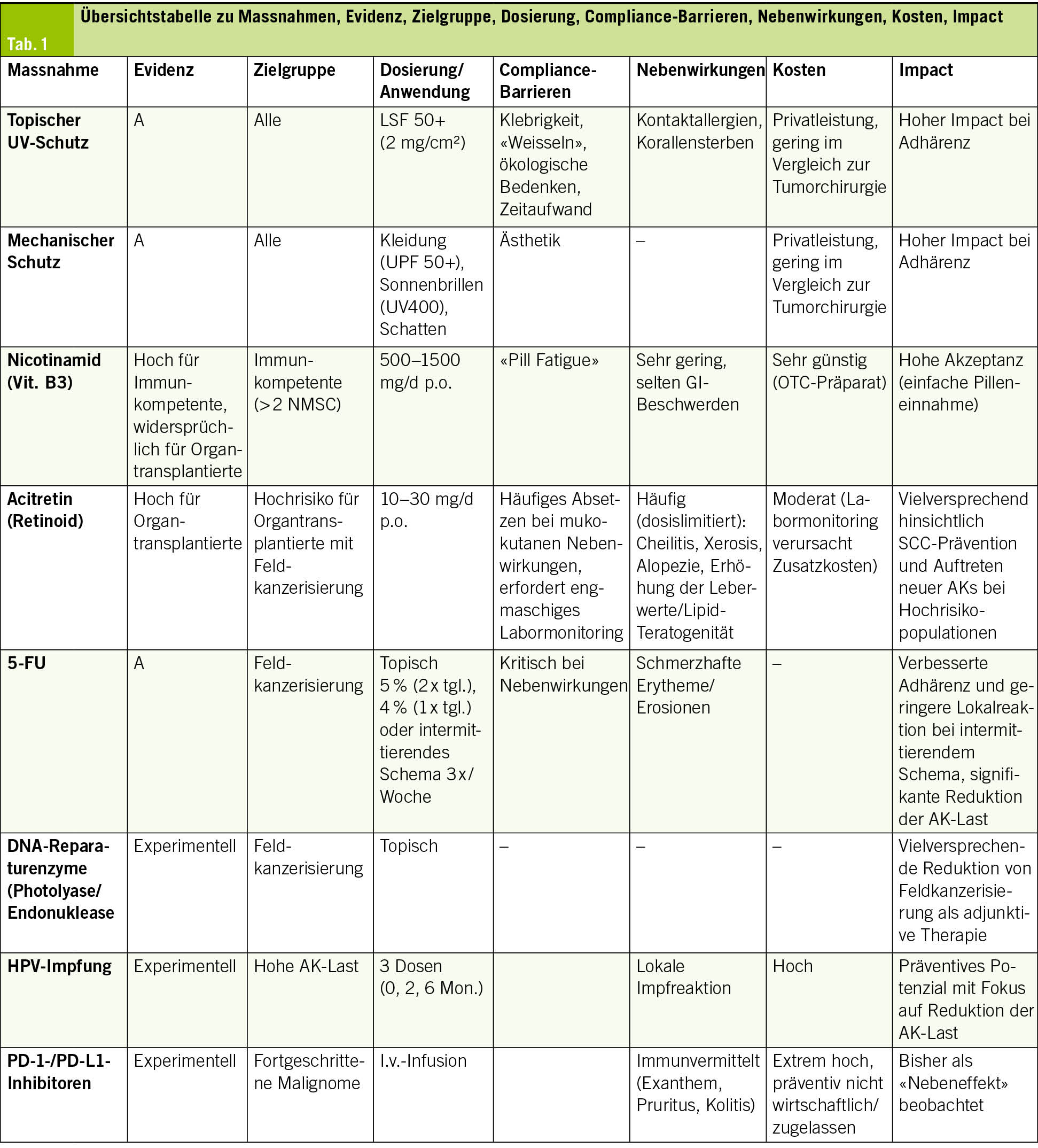 Innovative Ansätze wie die HPV-Impfung oder der Einsatz topischer Reparaturenzyme bieten einen Blick in die Zukunft und könnten insbesondere bei therapierefraktärer Feldkanzerisierung eingesetzt werden. Was jedoch schlussendlich entscheidend bleibt, ist die langfristige Compliance und die ärztliche Rolle in der adäquaten Aufklärung.