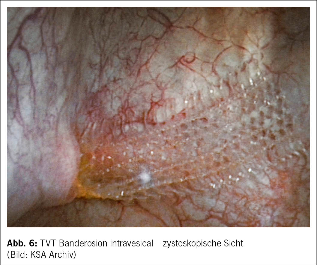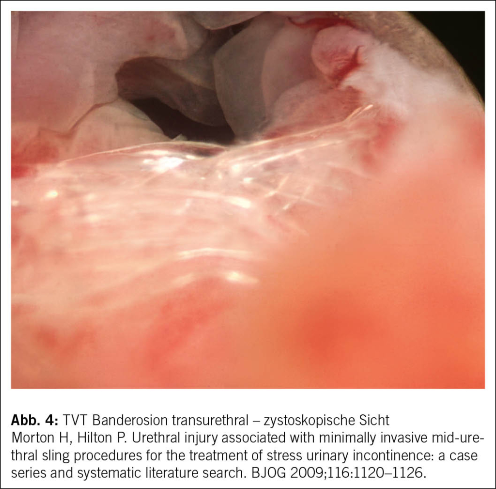 Zu den etablierten chirurgischen Verfahren zur Behandlung der Belastungsharninkontinenz bei Frauen zählen Suburethralschlingen (retropubisch – TVT-exact und transobturatorisch – TVT-O), die Injektion von Bulking Agents sowie die Kolposuspension (z. B. nach Burch oder MMK). Letztere wird in der Schweiz heutzutage jedoch nur noch selten angewendet, da das TVT – bei vergleichbaren Kontinenzraten – mit einer geringeren Inzidenz von Harnretention sowie Entero- und Rektozelen verbunden ist. Zudem erfolgt die TVT-Einlage minimal-invasiv und meist in Lokalanästhesie. Suburethralschlingen gelten somit mit Heilungsraten von bis zu 97 % über einen Beobachtungszeitraum von 5 bis 10 Jahren als sehr effektiv und stellen in Ländern, in denen der Einsatz von Netzmaterial zugelassen ist – darunter auch die Schweiz – den Goldstandard in der Therapie der Belastungsharninkontinenz dar. Vor diesem Hintergrund liegt der Fokus dieses Artikels auf den mit der TVT-Band-Einlage assoziierten Komplikationen.