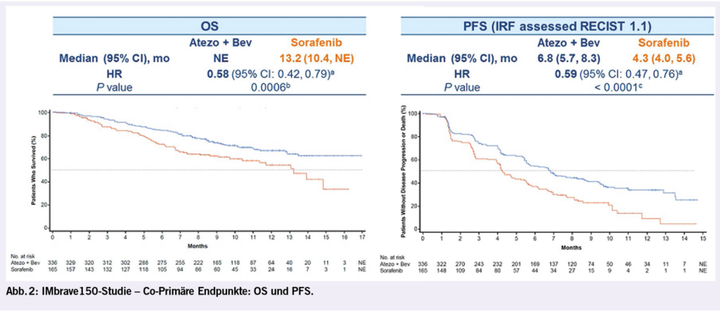 Die IMbrave150-Studie ist eine internationale Phase III-Studie bei Patienten mit fortgeschrittenem HCC und erhaltener Leberfunktion (Child A). Randomisiert wurde in Sorafenib oder in eine Kombinationstherapie mit Atezolizumab und Bevacizumab. Erste Resultate dieser Studie wurden bereits am ESMO Asia Meeting im Herbst 2019 vorgestellt. In dieser Studie konnte erstmalig eine Überlegenheit einer Immun-Kombinationstherapie gegenüber Sorafenib festgestellt werden. Obgleich die Ergebnisse noch früh sind (mediane Nachbeobachtungszeit 8 Monate), zeigt sich eine stat. Überlegenheit beim gesamt- als auch beim progressionsfreien Überleben. Ergänzt wurden die Ergebnisse durch umfangreiche PRO- und Lebensqualitätsanalysen, die die klinische Überlegenheit der Kombinationstherapien weiter unterstützen.