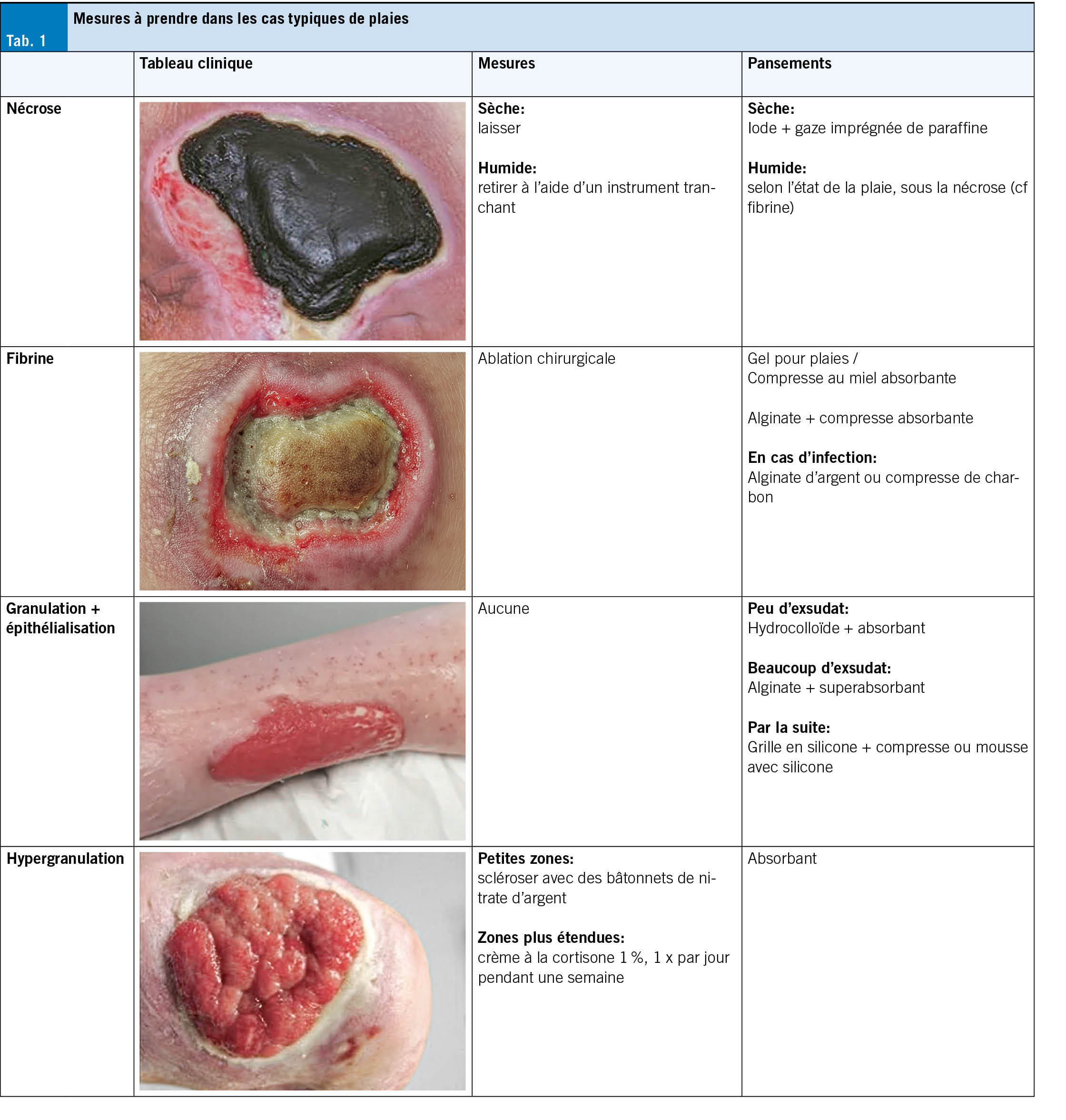 Déroulement d’un traitement typique de plaie: (Tab. 1)