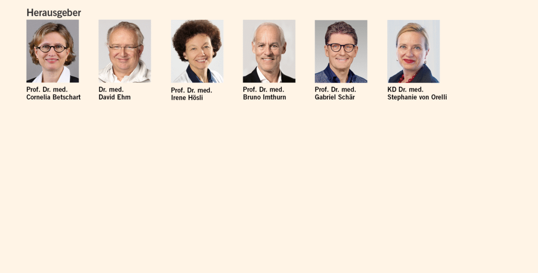 Das Herausgeberteam Prof. Dr. med. Cornelia Betschart, Zürich, Dr. med. David Ehm, Bern, Prof. Dr. med. Irene Hösli, Basel, Prof. Dr. med. Bruno Imthurn, Zürich, Prof. Dr. med. Gabriel Schär, Zürich, und KD Dr. med. Stephanie von Orelli, Zürich, definieren das Heft. Renommierte Autoren aus der ganzen Schweiz verfassen die Beiträge.